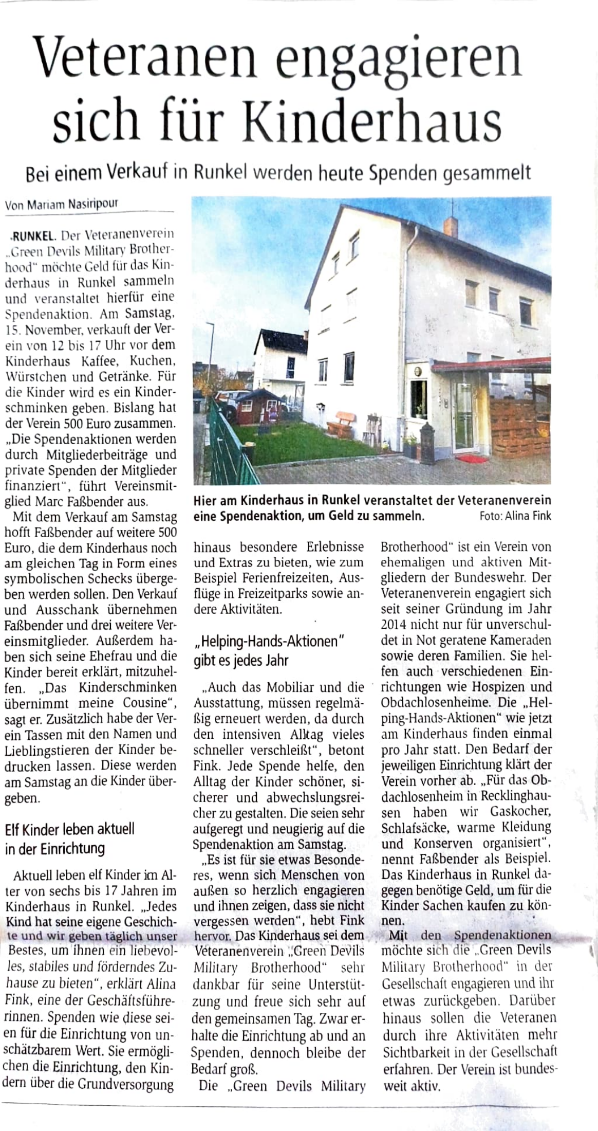 Ein riesiges Dankeschön an den Veteranenverein Green Devils Military Brotherhood, an Marc Faßbender und alle Helferinnen und Helfer für die wundervolle Spendenaktion vor unserem Kinder- & Jugendhaus!
